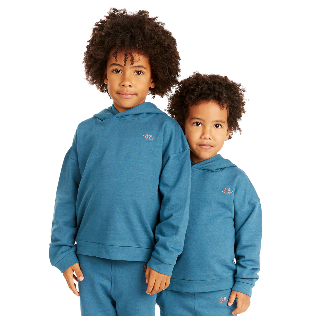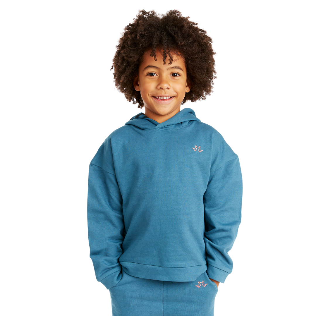 - Boy's and Girl's organic cotton blue hoodie is perfect for all day play