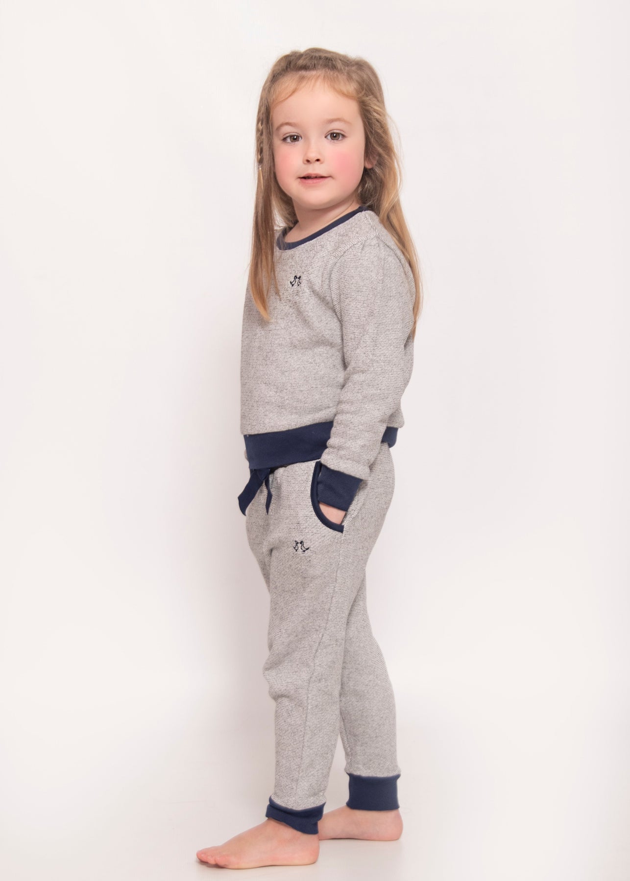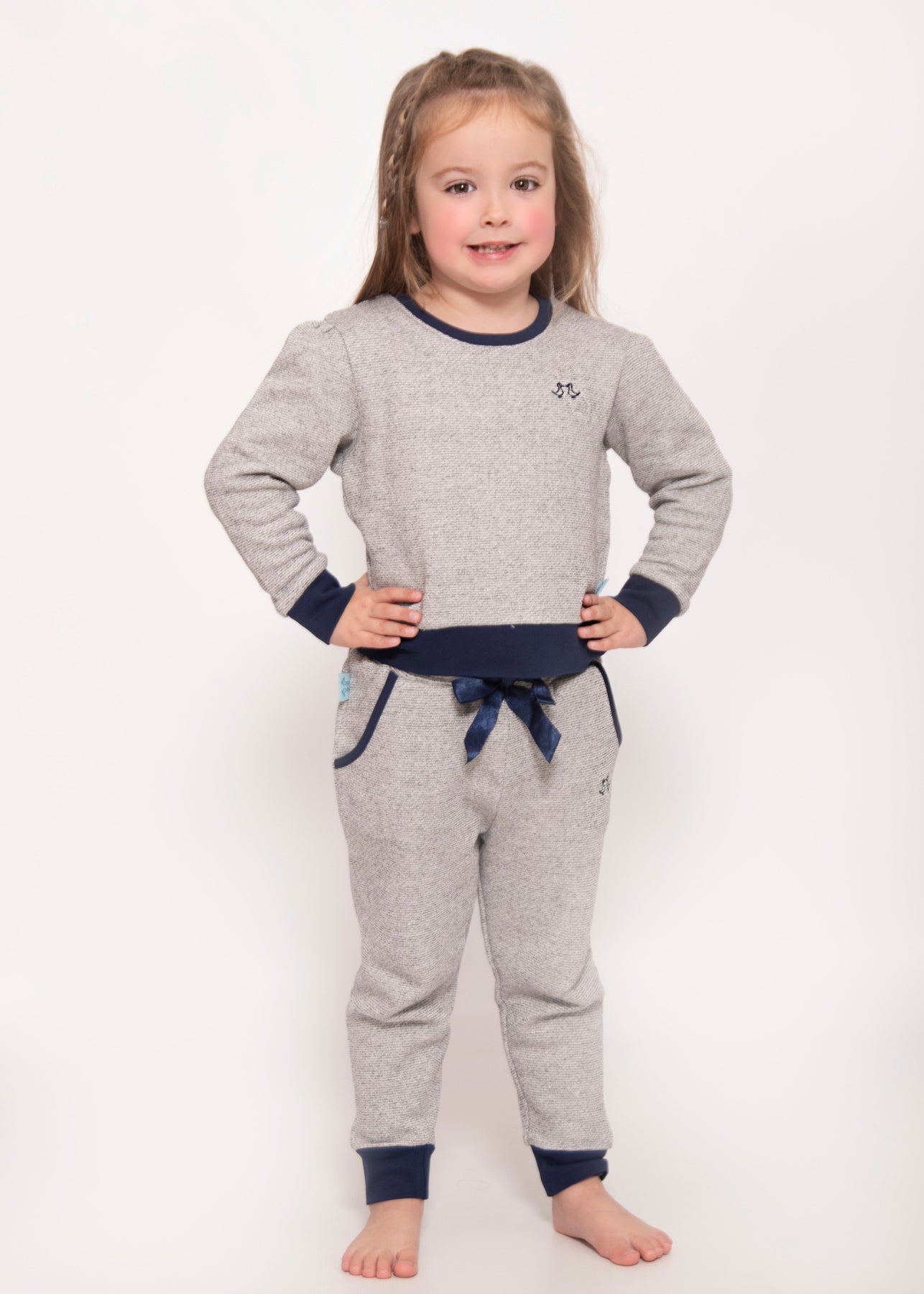 This organic girl's grey sweatshirt and joggers lounge set is perfect for travel days and for all day play in comfort and style.