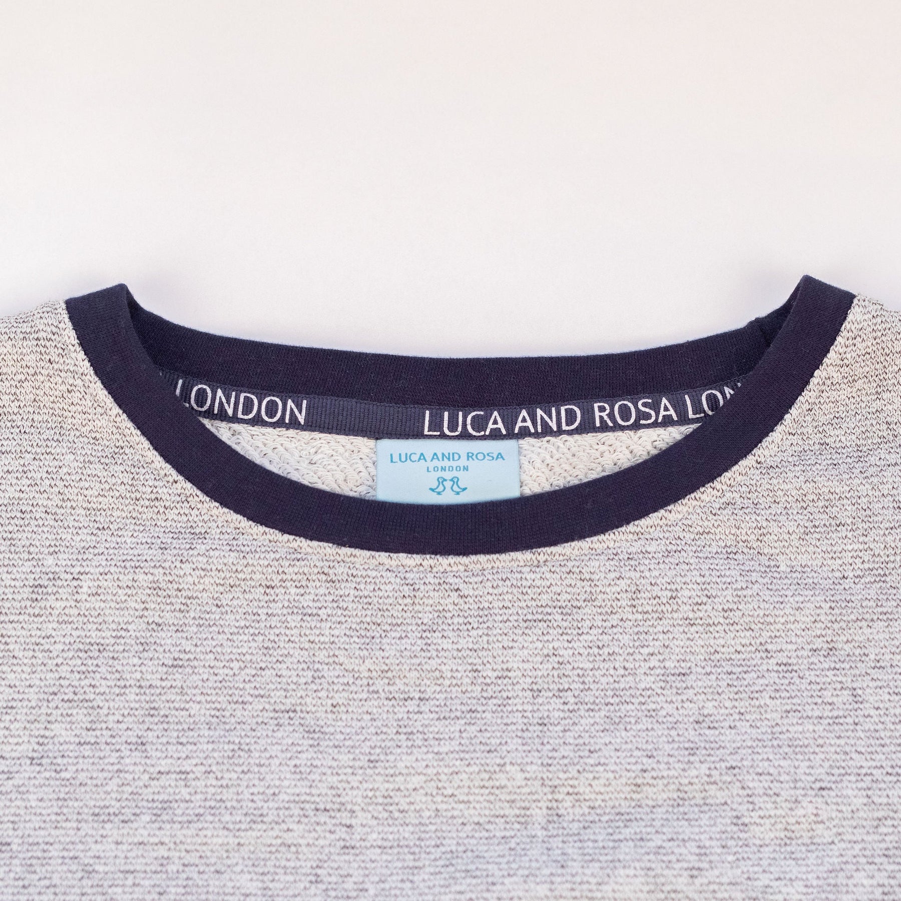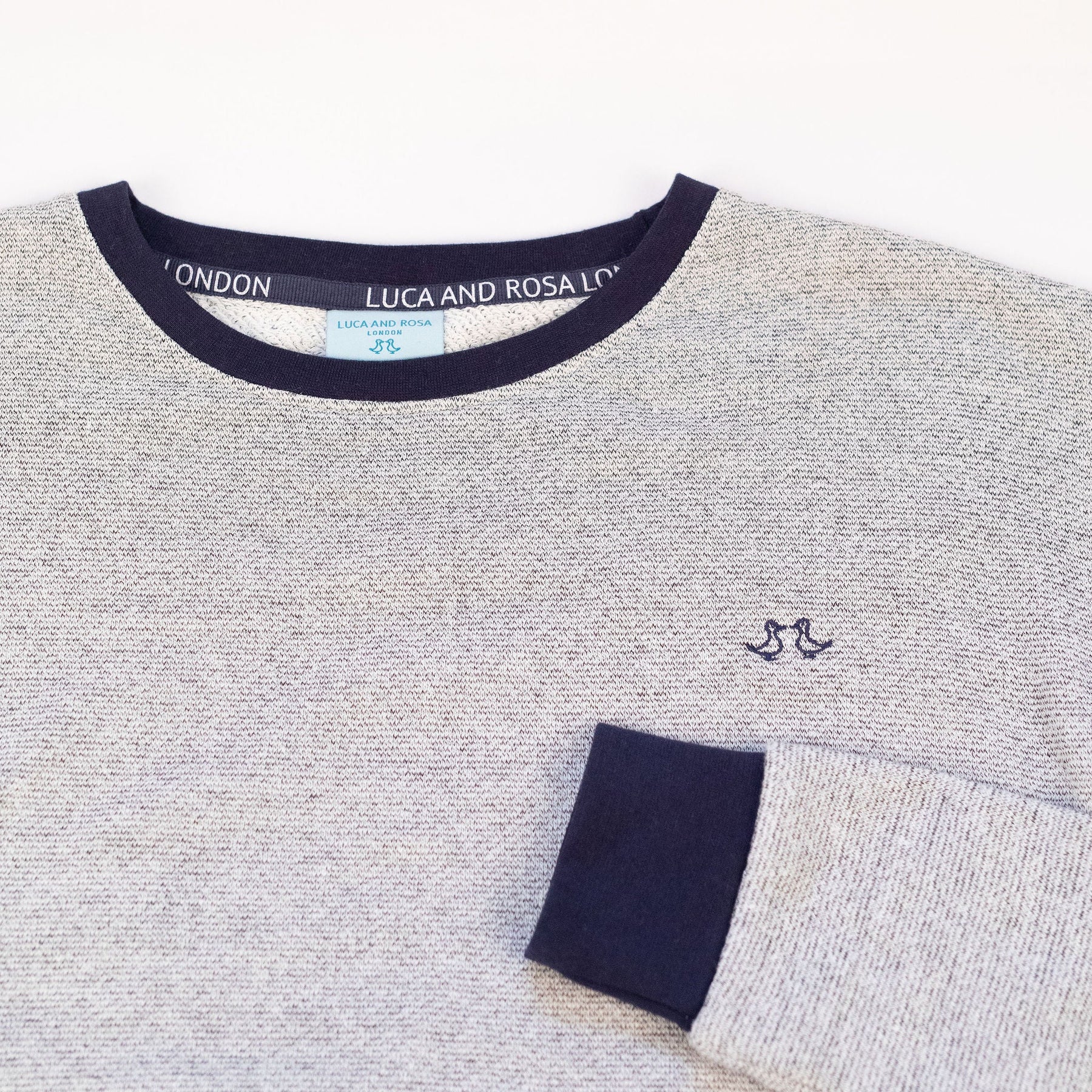 The classic cut crew-neck sweatshirt top comes with contrasting navy trim and cuffs.
