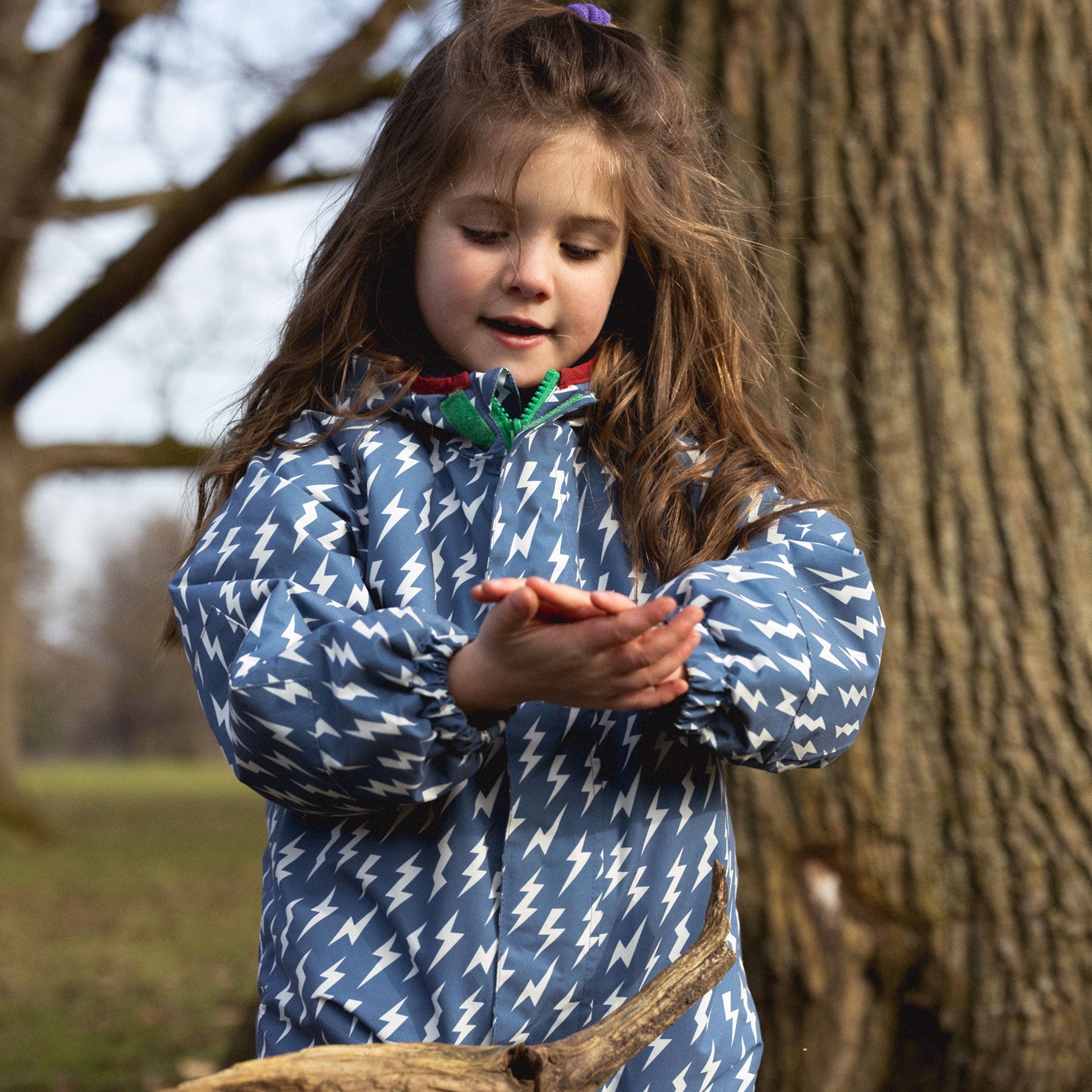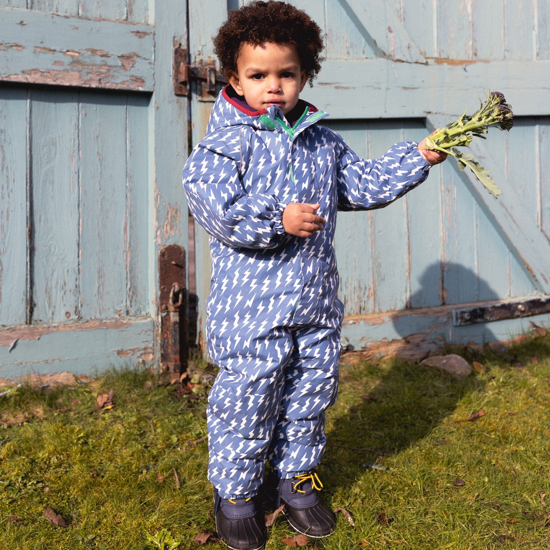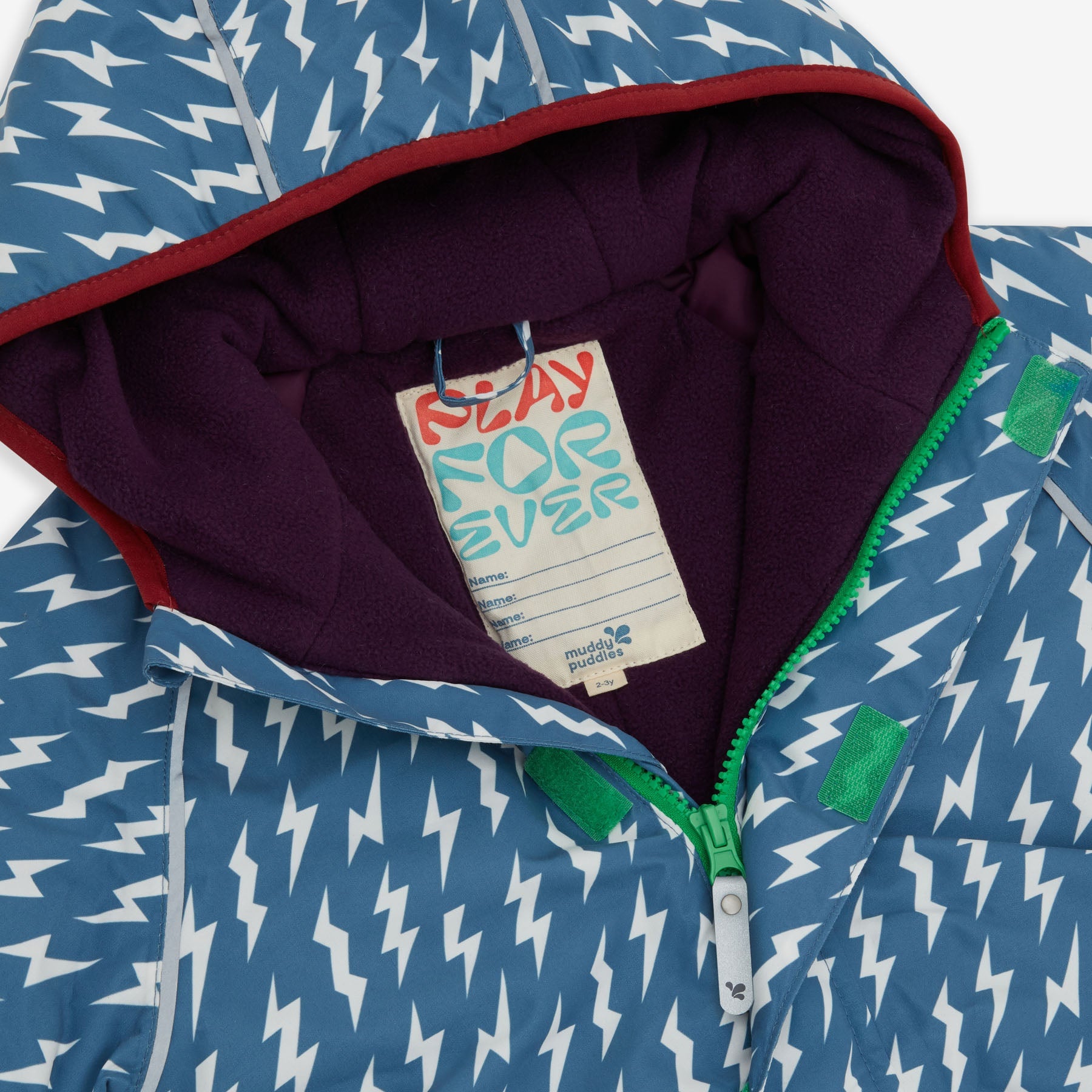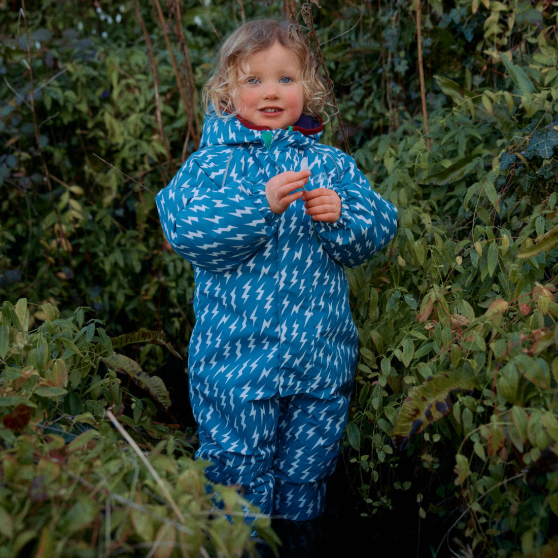 In a dazzling lightning bold print, this playful padded waterproof suit will have your little explorers brightening up winter adventures whatever the weather!