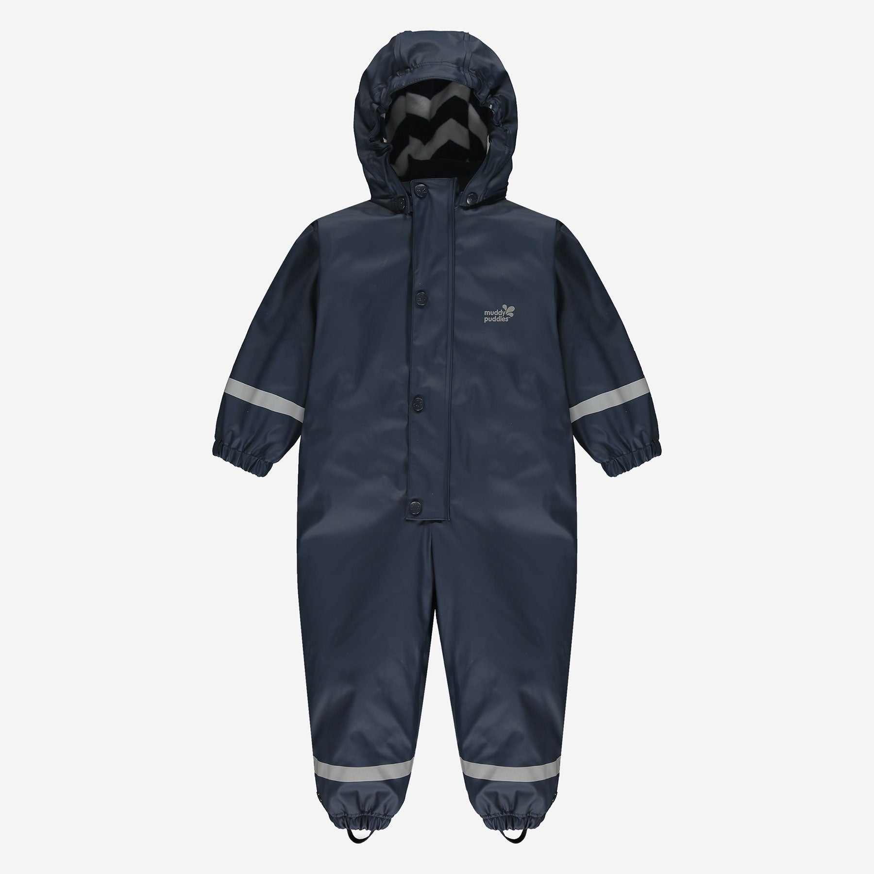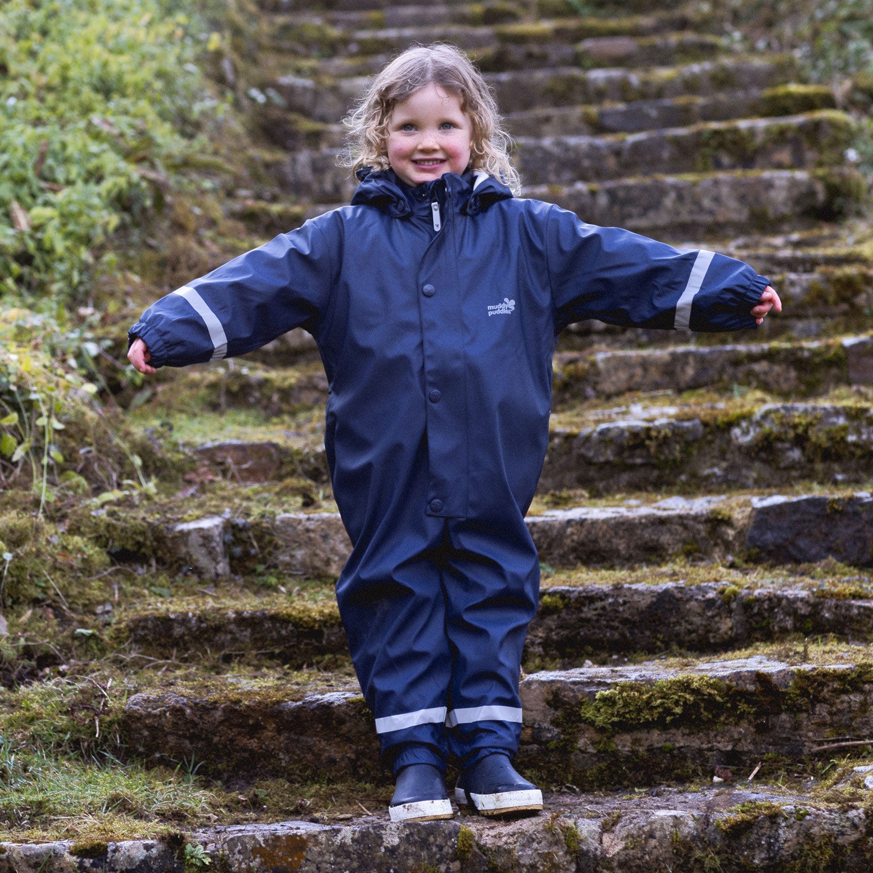 Regular price £75.00This Muddy Puddles super waterproof and warm PuddleFlex navy blue toddler / kids puddlesuit is made using recycled fabrics and is packed with handy features.