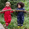 - Super waterproof navy blue toddler / kids puddlesuit for all-weather play.
