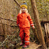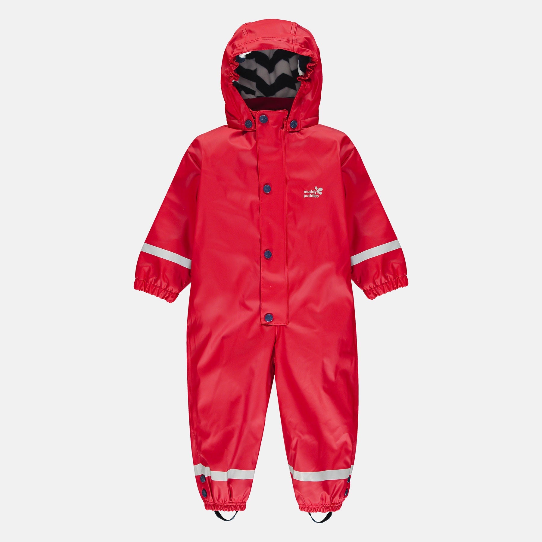 Regular price £75.00This Muddy Puddles super waterproof and warm PuddleFlex toddler / kids red puddlesuit is made using recycled fabrics and is packed with handy features.