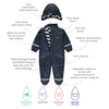 To protect the smallest explorers (6-12 months) from the chilly weather and rain, we have included fold-over mitts to cover little hands.