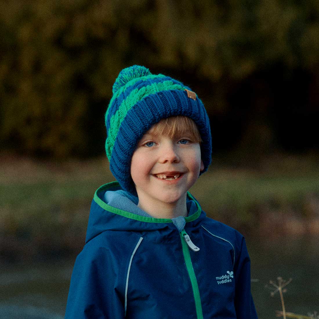 Set off on wintery adventures with our ultra cosy kids’ bobble hat in a colourful green and navy stripe. This ultra snug hat is crafted from a soft wool mix yarn that provides essential warmth on frosty days while the stripey design and cheerful bobble adds a playful touch to any winter outfit.